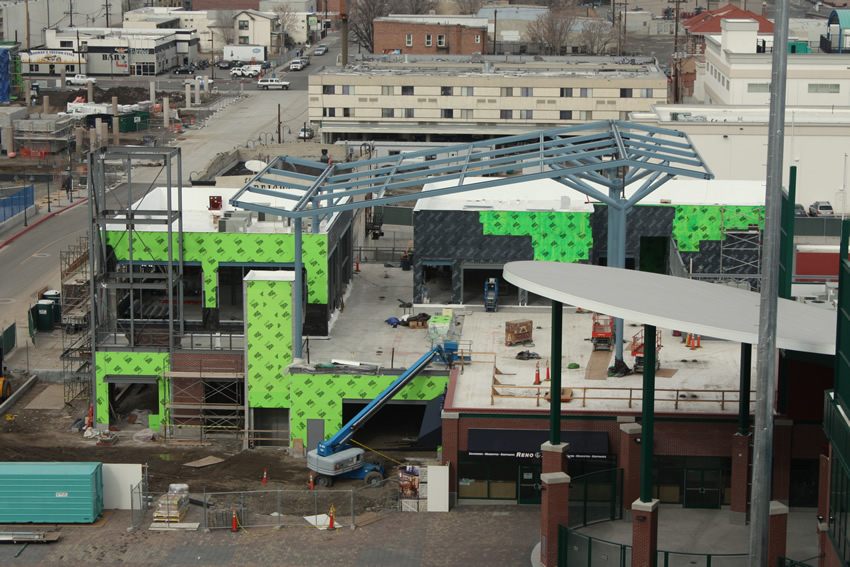 Photos of Holcomb Townhomes, now starting in the $150,0000's, Reno Aces Ballpark Expansion Phase 2a, and the 4th Street Transit Station.
