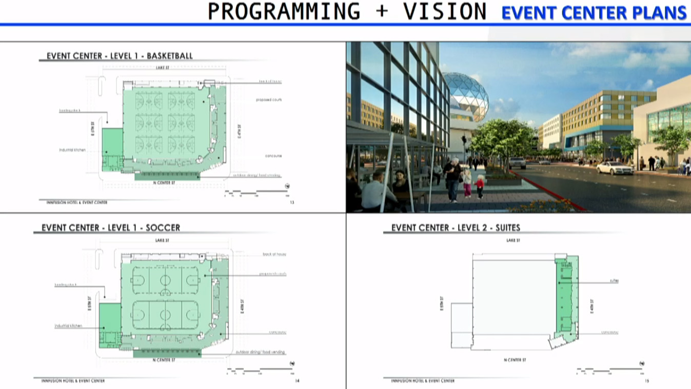 The plan for the events center is to expand it with modular sporting equipment so it could accomodate everything from basketball to lacrosse to indoor soccer. They also plan to add a kitchen.