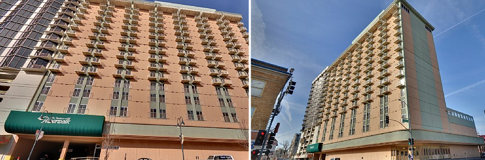 Completed! Now they just have to build the retail level on the lower floor. Formerly a cruddy nasty hotel casino called the Comstock, and then played a brief stint as 'affordable apartment housing' which really translated into Tower of Crime and Fear, now the former Comstock has been completely gutted and remodeled into high-end condos. These condos are NICE, with oversized whirlpool tubs, GE Profile appliances, slab granite counter-tops, 9 foot ceilings and beautiful views.