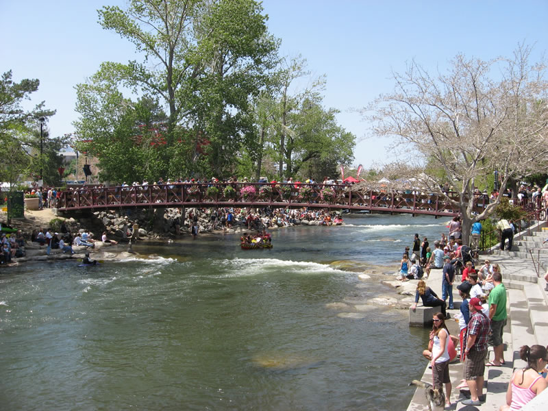 People line the banks of the Truckee to watch the downtown Reno River Festival